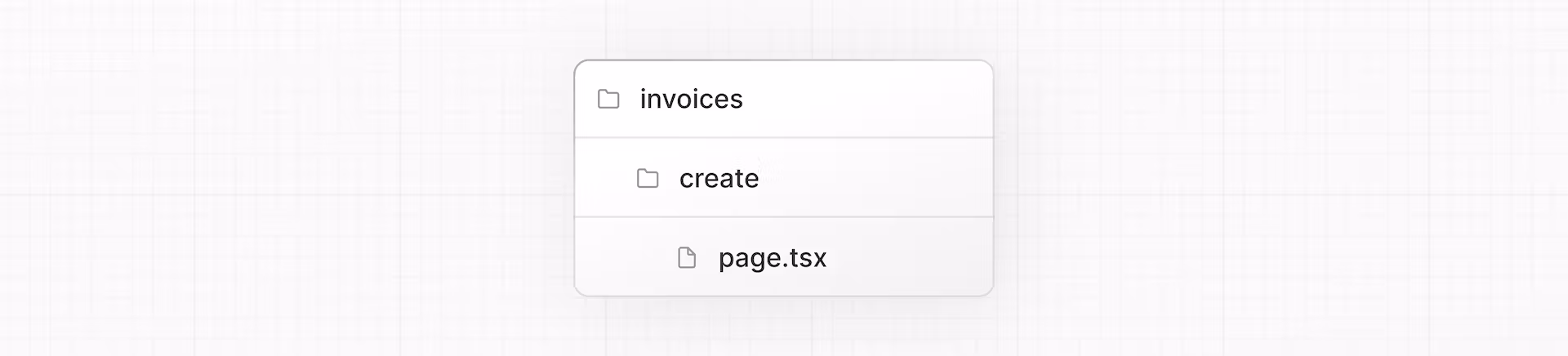 首先,在 /invoices 目录内,添加一个名为 /create 的新路由段,包含一个 page.tsx 文件: